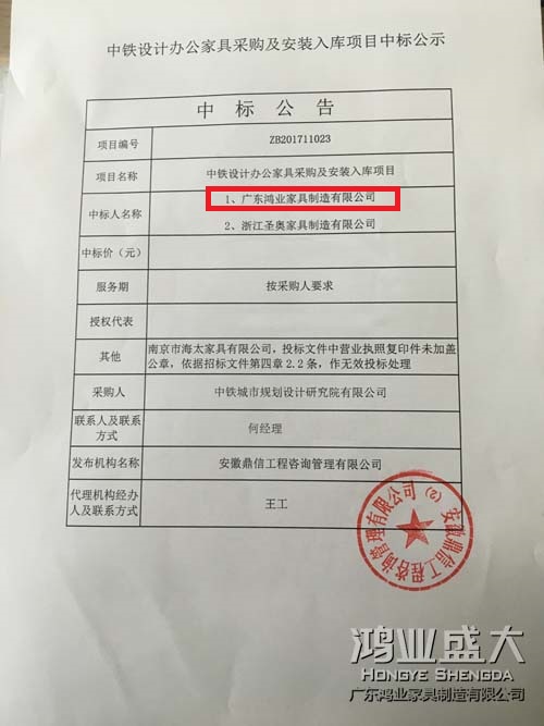 安徽鼎信工程咨詢管理有限公司受中鐵城市規(guī)劃設(shè)計(jì)研究院有限公司的委托于2017年12月9日組織了蕪湖中鐵設(shè)計(jì)廣場(chǎng)企業(yè)辦公家具采購及安裝入庫項(xiàng)目招標(biāo)采購,評(píng)標(biāo)小組依照公開招標(biāo)文件確定的標(biāo)準(zhǔn)、辦法,進(jìn)行了客觀公正的評(píng)定,廣東鴻業(yè)家具以絕對(duì)優(yōu)勢(shì)奪下該項(xiàng)目。